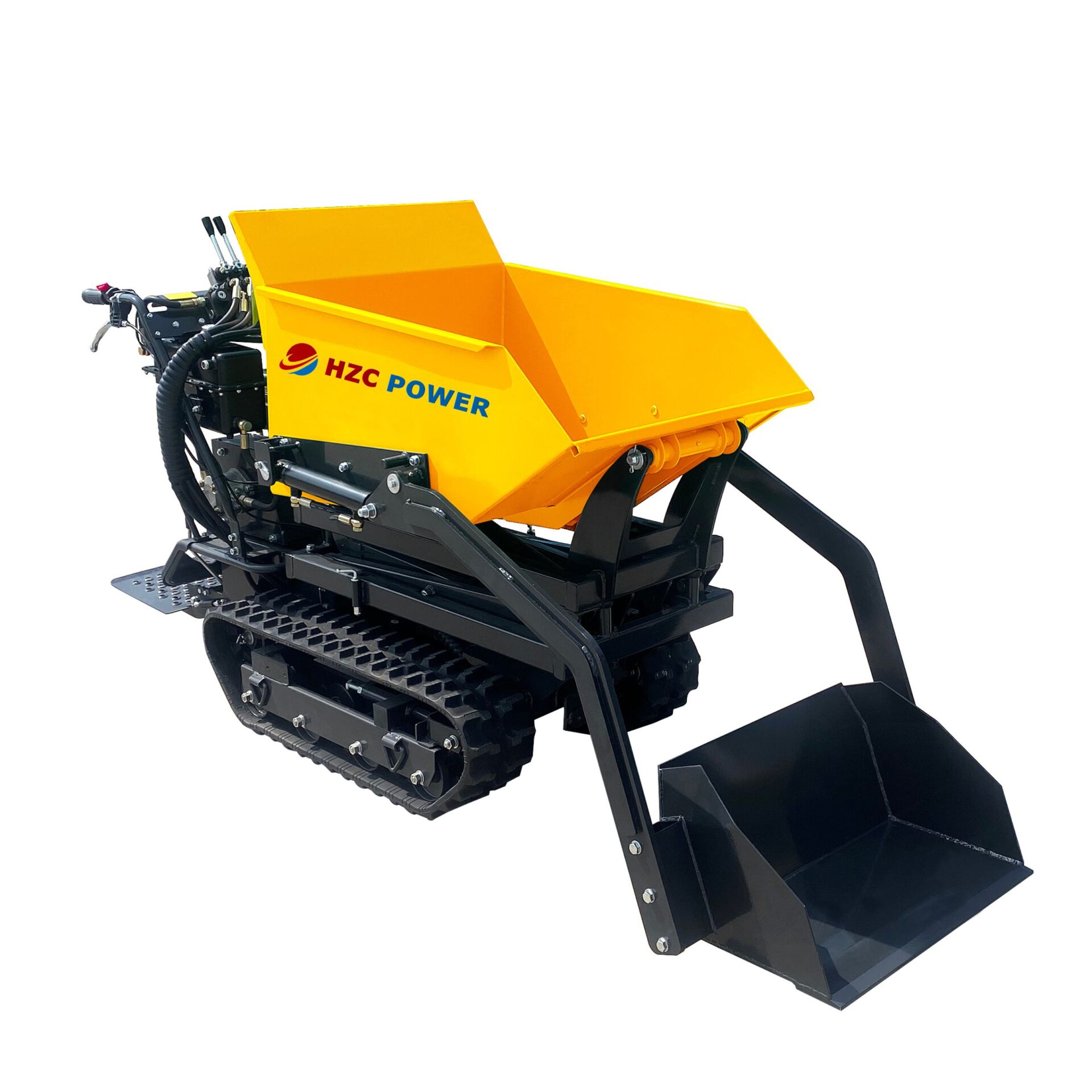 • Modell: Mini dumper med hydrauliskt tippningssystem & banddrift samt hydraulisk självlastande skopa (MDK501HKSSH)