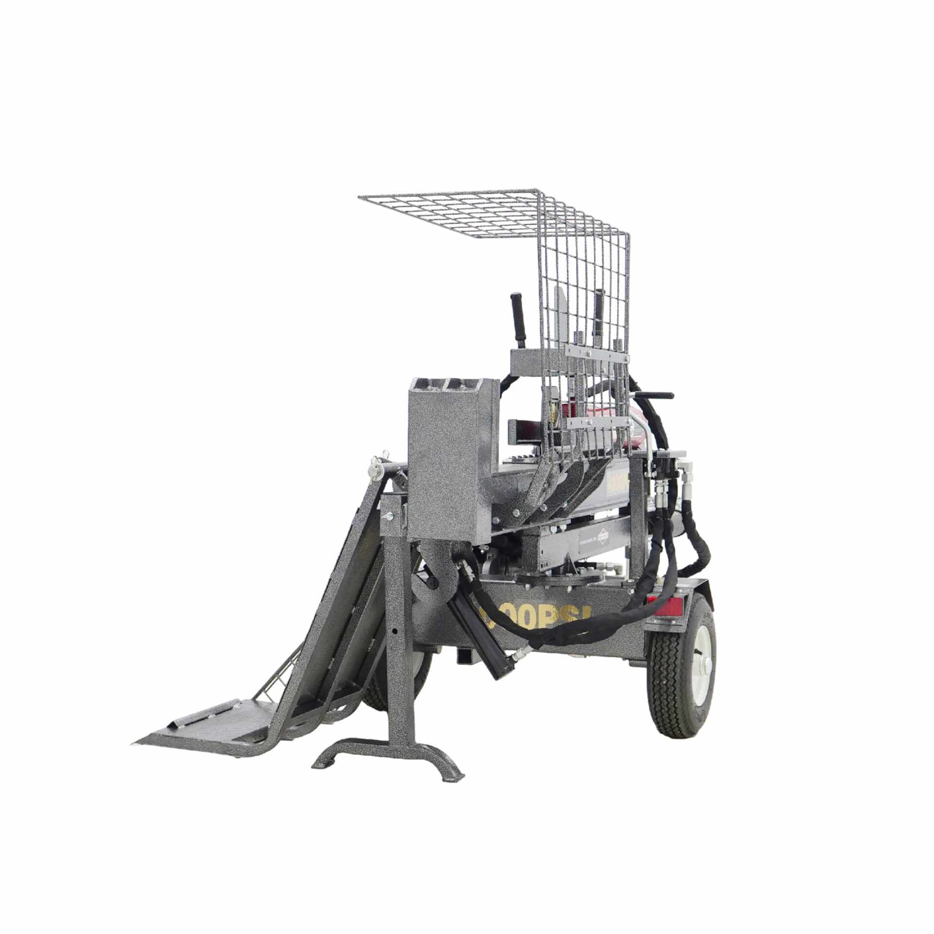 Briggs & Stratton bensinmotor (13,5 hk) Cykeltid 15 sekunder 40 ton klyvningskraft Maximal klyvningslängd: 53 cm Oljefilter för längre livslängd Horisontell arbetsposition Vedlyft upp till 80 kg lastkapacitet Trailerkoppling